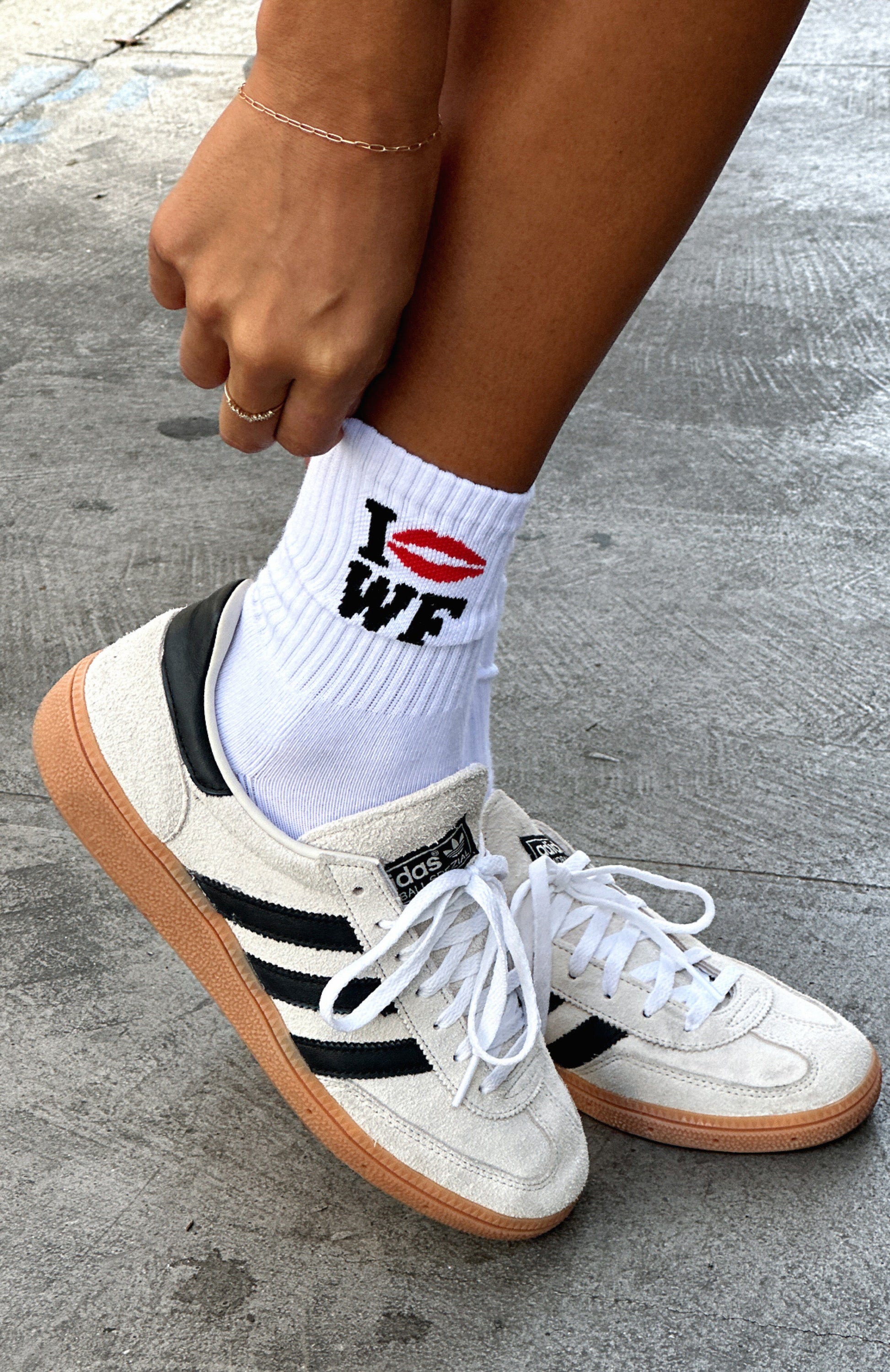 The 11th Street City Of Dreams Socks Frosting are perfect for strolling along the upper east side! These cushioned crew socks feature embroidered White Fox Logo and ribbed ankle cuffs and arch band. Style them with your favourite sneakers for a comfy and cute every-day look!Â
