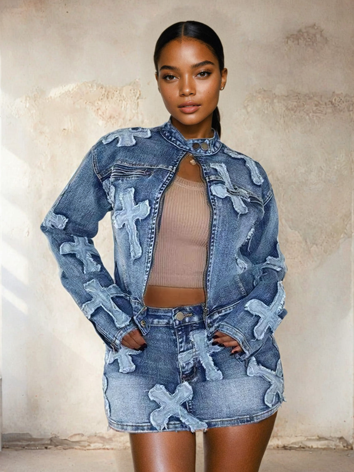 You can wear the skirt and jacket together for a coordinated look or separately for more styling options. This stylish combination can elevate your wardrobe.