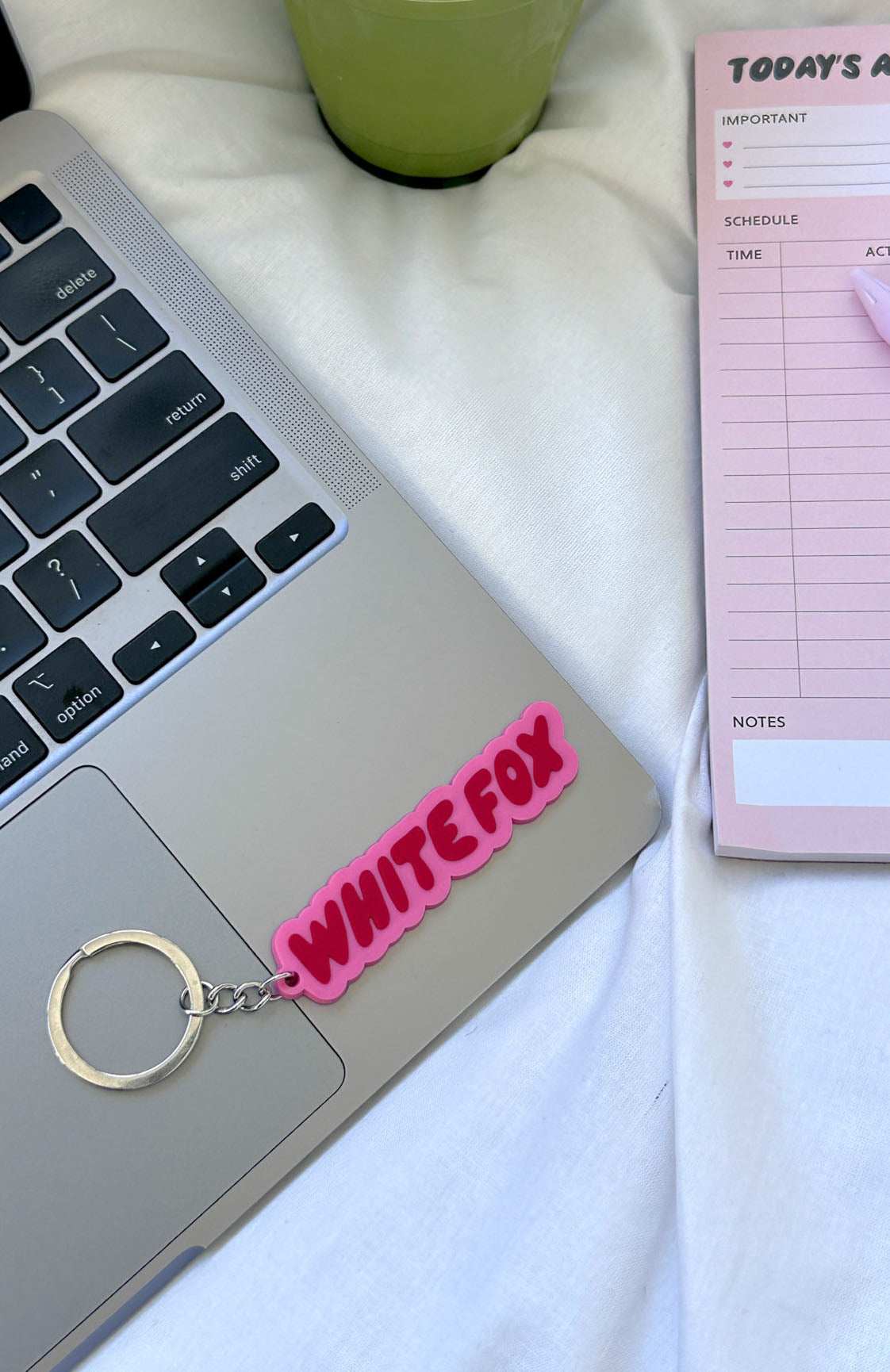 The ultimate off-duty accessory. The I've Got You Keychain Pink/Red is the cutest accessory that we're loving to be paired with our keys. bag or purse. Features a keyring. rubber design. puff print logo design and contrasting colour. Have a matching moment and pair it with your favourite Offstage Hoodie.Â