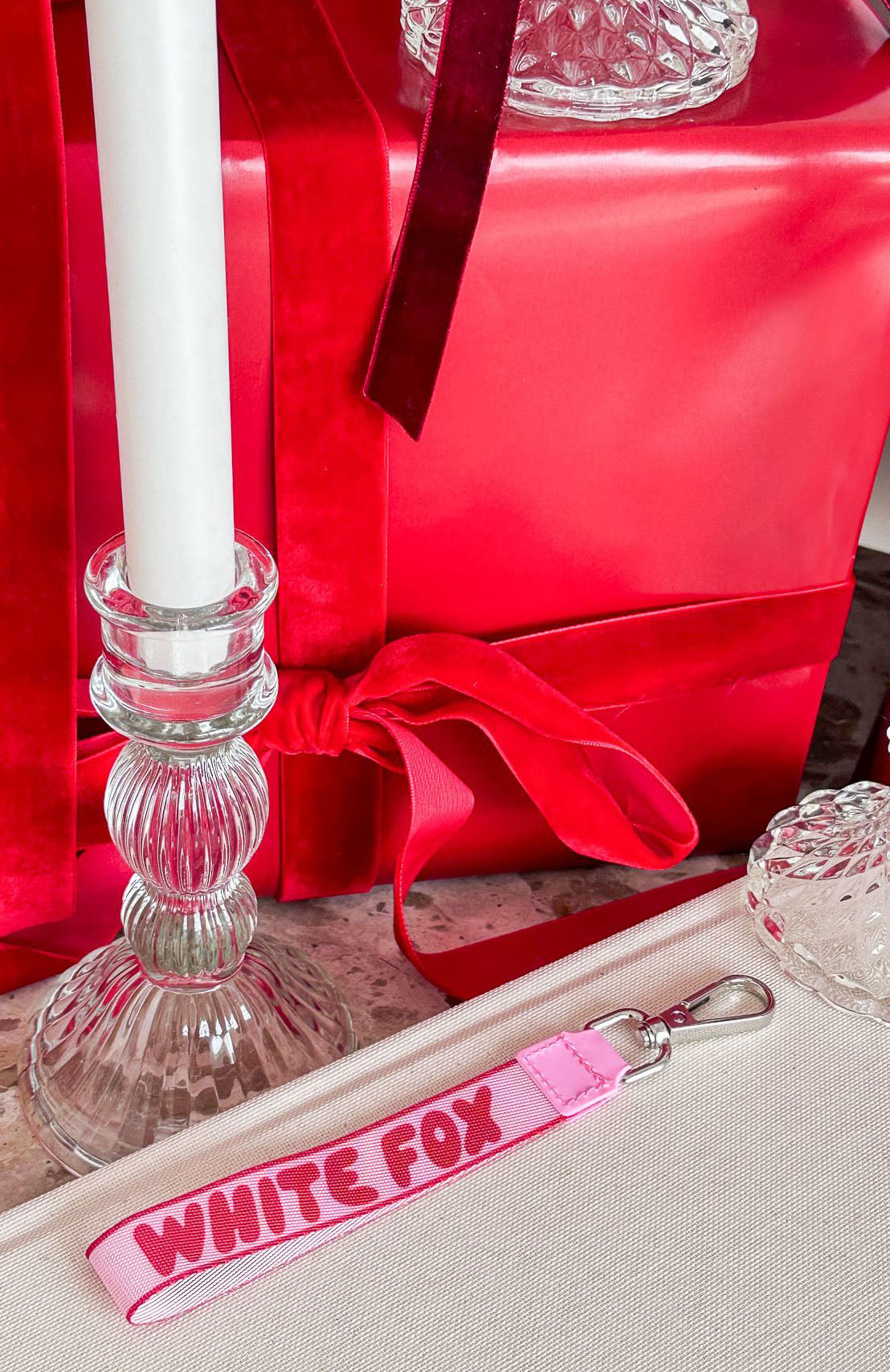 Babe. get your hands on our newest The Next Level Strap Keychain Pink/Red. The perfect addition to small accessories or attach it to your keys.