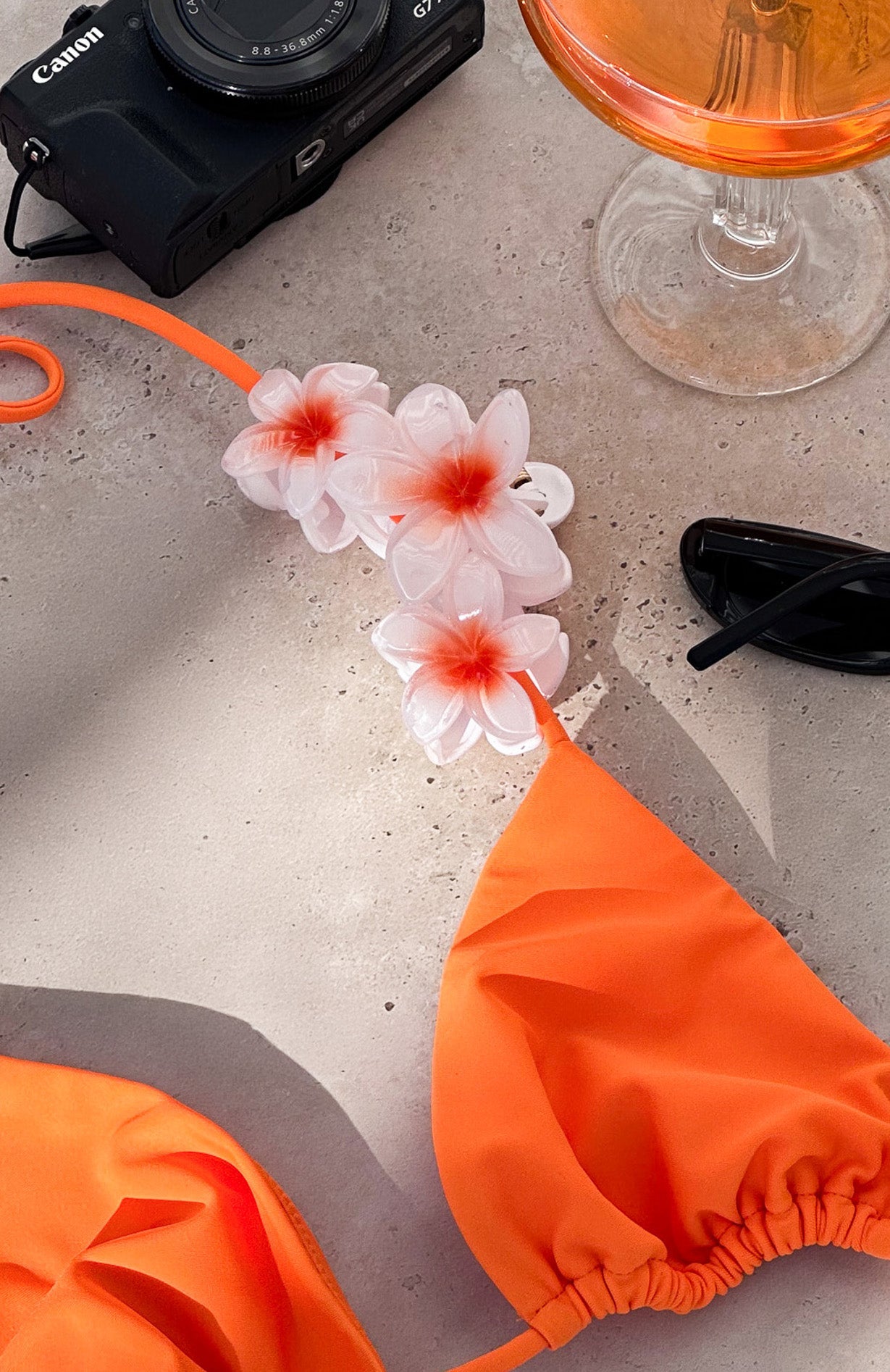 Become an Island girl with the Parker Hair Clip in White! Features a frangipani design with claw clip closure to hold your salty and sun-drenched hair. We are in love!
