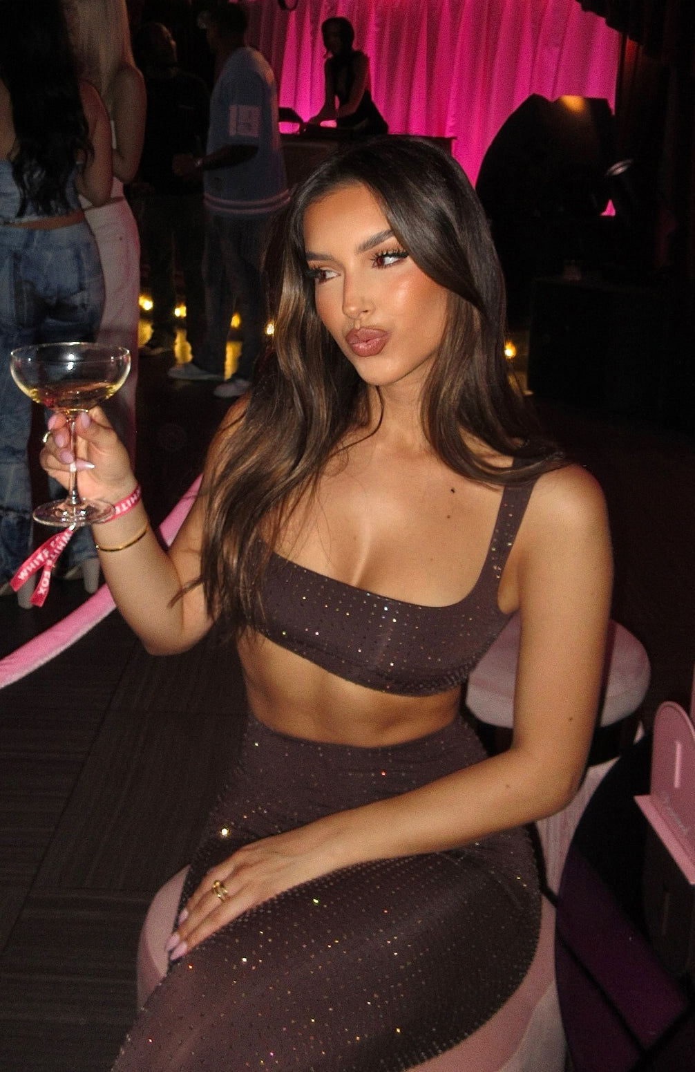 Make an entrance in the Running Late Embellished Crop Chocolate. Features thick shoulder straps. lining. diamante embellishments and super cropped length. Pair with the matching Running Late Pants for extra style points.Â