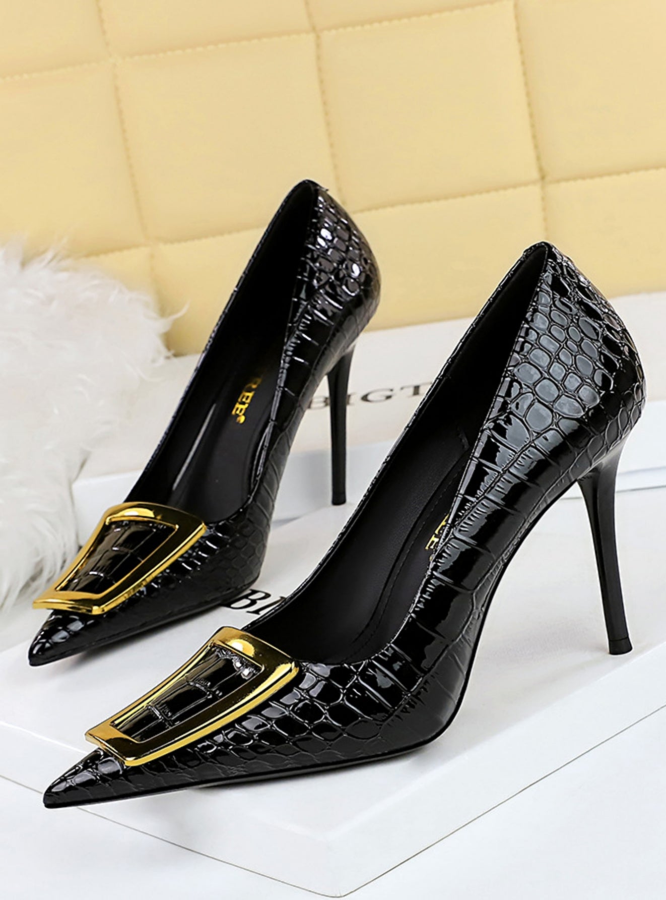 Shallow-mouthed Pointed Metal Buckle High Heels