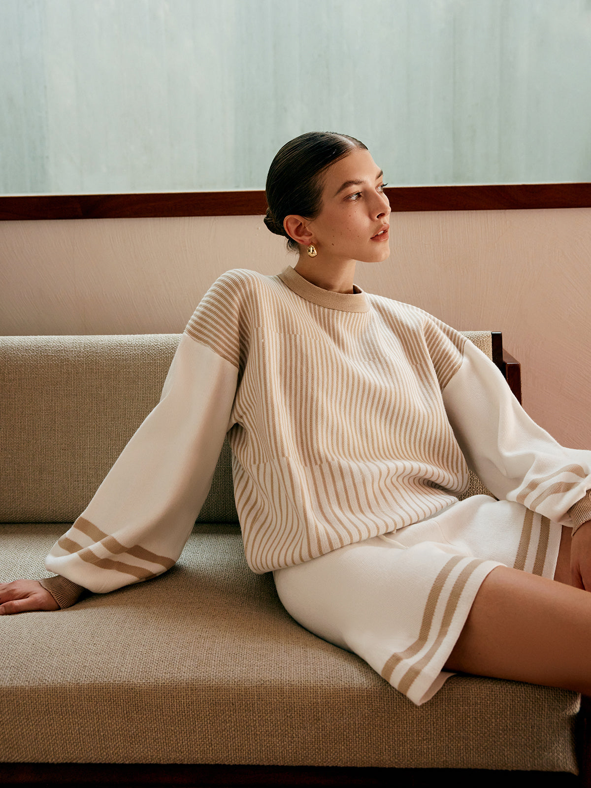 Striped Drawstring Sweater Co-ords