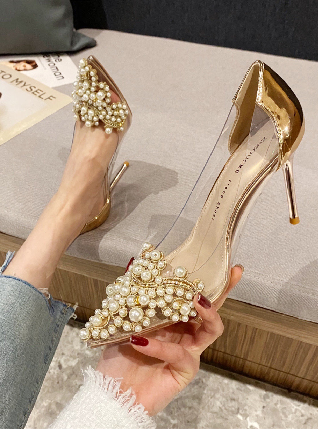 Transparent Pearls Stiletto Heels Shoes