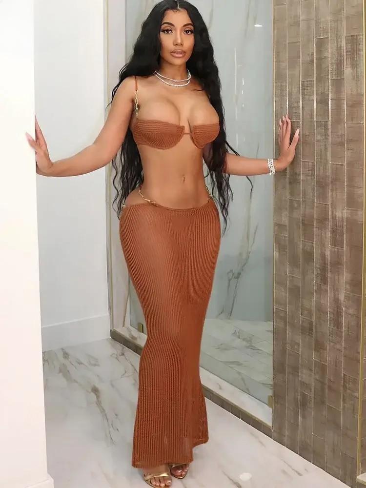 Two-Piece with Hip Chain Long Skirt