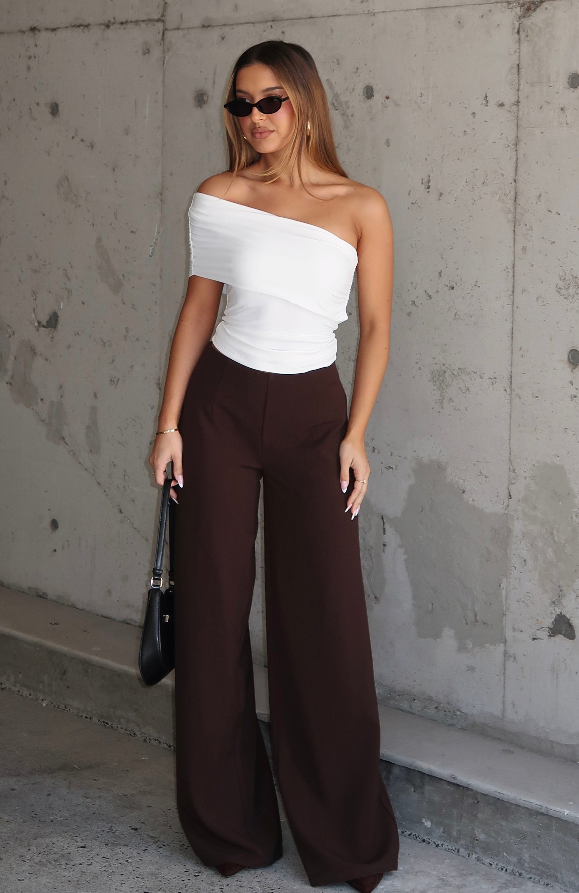 Simple yet chic - introducing the Walk With You Pants in Chocolate. Features a tailored pant design with subtle leg flare and invisible zipper with hook and eye closure on side. Complete the look effortlessly by pairing with the Our Little Secret Top Chocolate and kitten heels.Â